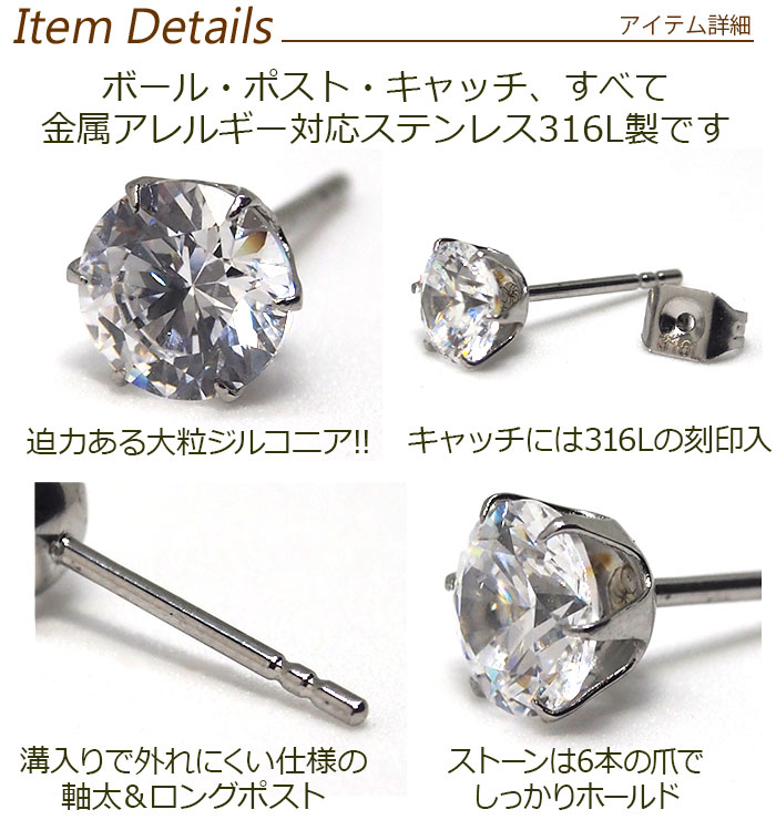 なのに、輝きや艶感はぜんぜん安っぽくなく ダイヤモンドに勝るとも劣らないと 自負しています! さらに、当店はすべて1個ずつバラ売りなので 万が一無くしても、片方だけ購入すればOK。